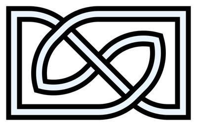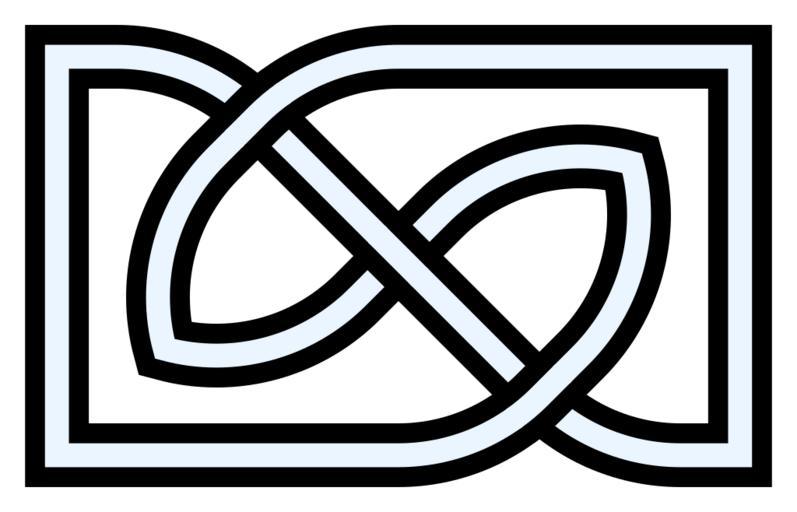 | Keywords: Trefoil-non-3-symm.svg The Trefoil three-crossing knot of knot theory depicted in a symmetrical form but without its usual visible three-fold structure here there is two-fold rotational symmetry fitting within a rectangle but no three-fold symmetries or anything approximating to three-fold symmetry To see that this is topologically equivalent to the more usual visual forms of the trefoil knot look at image File Trefoil-non-3-symm-flip demonstration svg center 540px For a more symmetrical 3-D version of this see File One-Twist Trefoil png Self-made graphic converted from the following vector PostScript source code <pre> 306 396 translate/z 20000 sqrt def 92 96 1 setrgbcolor 12 setlinewidth 0 0 100 315 270 arcn z 30 add neg -100 lineto z 30 add neg 100 lineto z neg 0 100 90 45 arcn z 0 100 225 270 arc z 30 add -100 lineto z 30 add 100 lineto 0 0 100 90 135 arc z -2 div 50 add z 5 mul neg 50 add 100 135 195 arc z neg 50 add 50 100 255 315 arc z 50 sub -50 100 135 75 arcn z 2 div 50 sub z 2 div 50 sub 100 15 -45 arcn closepath gsave 0 setgray 32 setlinewidth stroke grestore stroke 0 setgray 32 setlinewidth -10 10 moveto 20 -20 rlineto stroke 0 0 100 126 135 arc -11 -11 rlineto stroke 0 0 100 306 315 arc 11 11 rlineto stroke 92 96 1 setrgbcolor 12 setlinewidth -11 11 moveto 22 -22 rlineto stroke 0 0 100 125 135 arc -12 -12 rlineto stroke 0 0 100 305 315 arc 12 12 rlineto stroke showpage EOF</pre> 2009 AnonMoos Trefoil knots Decorative knots Images with PostScript source code Knots and links on transparent background Outline knots and links 2-fold rotational symmetry |