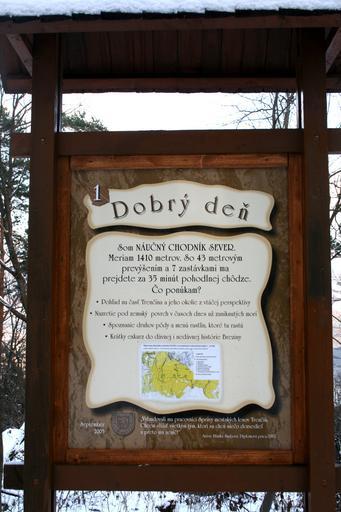 Keywords: Trencin Brezina16.jpg sk Informačná tabuľa o naučnom chodníku na Brezine Own Peter Zelizňák 25 decembra 2008 Own work all rights released Public domain PD self Trenčín Images by Peter Zeliznak