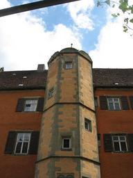| Keywords: Treppenturm des Erasmusbaus des Obersontheimer Schlosses.jpg Treppenturm des Erasmusbaus im Innenhof des Obersontheimer Schlosses 2009-07-11 own Brtlwr2 <span class signature-talk >talk</span> 49 03 25 41 N 09 53 45 1 E region DE_heading ESE Cc-zero Schloss Obersontheim |