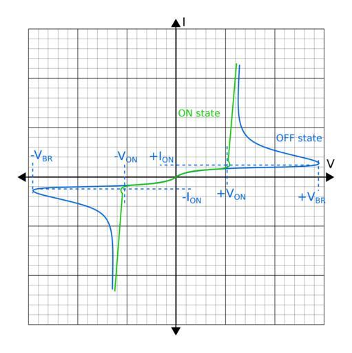 Keywords: Triac IV curve.svg en Characteristic Current-Voltage curve of the TRIAC semiconductor Also with labels of some characteristics 2015-07-25 own Magnus other versions cc-zero Uploaded with UploadWizard Semiconductor devices characterization