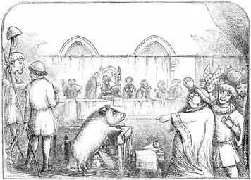 | Keywords: Trial of a sow and pigs at Lavegny.png Among trials of individual animals for special acts of turpitude one of the most amusing was that of a sow and her six young ones at Lavegny in 1457 on a charge of their having murdered and partly eaten a child ¦ The sow was found guilty and condemned to death; but the pigs were acquitted on account of their youth the bad example of their mother and the absence of direct proof as to their having been concerned in the eating of the child date http //archive org/details/bookofdaysmiscel01cham The book of days a miscellany of popular antiquities author Custom license marker 2012 04 19 PD-old Uploaded with UploadWizard Pigs in art Trials in art Anthropomorphism |