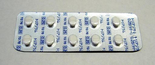 | Keywords: Triazolam (Tanabe) 2012-10-19.JPG en Blister pack of Triazolam of TanabeSeiyaku Hanbai Japanese pharmaceutical company ja トリアゾラム錠0 25mg(田辺製薬販売)の PTP 包装 2012-10-19 10 15 38 own Asanagi cc-zero Uploaded with UploadWizard Blister packs pharmaceutical products Mitsubishi Tanabe Pharma |