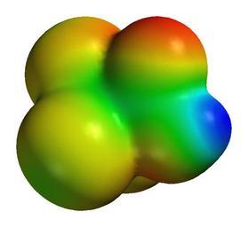 Keywords: Trichloroacetic-acid-elpot.png Space-filling model with visualization of electrical potential of the chemical compound trichloroacetic acid Kalottenmodell mit Visualisierung von elektrischem Potenzial für die chemische Verbindung Trichloressigsäure Molecular electrical potential surfaces Trichloroacetic acid