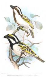 | Keywords: TricholaemaSmit.jpg Tricholaema stigmatothorax Tricholaema melanocephala stigmatothorax Black-throated Barbet above ; Tricholaema affine Tricholaema leucomelas affinis Pied Barbet below Catalogue of the Birds in the British Museum Volume 19 1891 creator Joseph Smit File Tricholaema leucomelas Smit jpg PD-old Joseph Smit Catalogue of the Birds in the British Museum Tricholaema melanocephala Tricholaema leucomelas | ||||