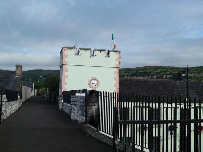 Keywords: TricolourCarnloughClockTower.JPG en A tricolour on top of Carnlough library Harbour Road Carnlough own DColt 2009-08-09 54 59 34 1 N 5 59 22 36 W alt 65_source exif_heading Flags in County Antrim August 2009 in Northern Ireland Carnlough