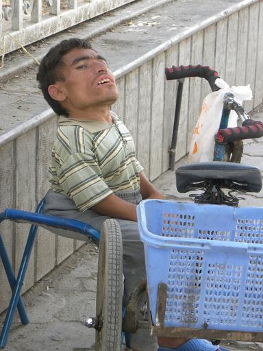 Keywords: Tricycle Rider dwarf man 1.jpg en Tricycle_Rider_dwarf_man own User Sonia Sevilla 2009 Cc-zero Personality rights People of Nishapur People with dwarfism