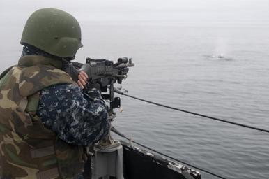 | Keywords: Trident Fury 2013 130509-N-QY316-051.jpg en U S Navy Gunner's Mate Seaman Chase Havberg assigned to the guided missile frigate USS Ford fires an M240B machine gun at a remote-controlled moving target in the water during exercise Trident Fury 2013 in the Pacific Ocean May 9 2013 The Ford was participating in Trident Fury a joint training exercise developed by Canada's Pacific Joint Task Force Headquarters for the purpose of building a strong working relationship between the maritime and aviation forces of the United States and Canada 2013-05-09 FFG 54 https //www dvidshub net/image/936203 130509-N-QY316-051 2013-05-20 05 54 PACIFIC OCEAN AT SEA PD-USGov-Military-Navy Trident Fury 2013 M-240 machine gun Images from DoD uploaded by Fæ |