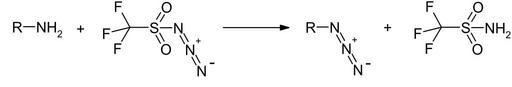 Keywords: Trifluoromethanesulfonyl azide reaction02.svg en Formation of organic azides from amines and trifluoromethanesulfonylazide de Herstellung von organischen Aziden durch Umsetzung von Aminen mit Trifluormethansulfonylazid own Steffen 962 2015-01-18 PD-chem Trifluoromethanesulfonyl azide Chemical syntheses Cc-zero |