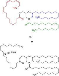 | Keywords: Triglyceride Hydrogenation&Isomerization V.1.png en Triglyceride_Hydrogenation Isomerization de Triglycerid-Hydrierung und -Isomerisierung Bildung eines Triglycerides das eine veresterte trans-Fettsäure enthält own Jü 2011-09-19 Cc-zero Chemical syntheses |