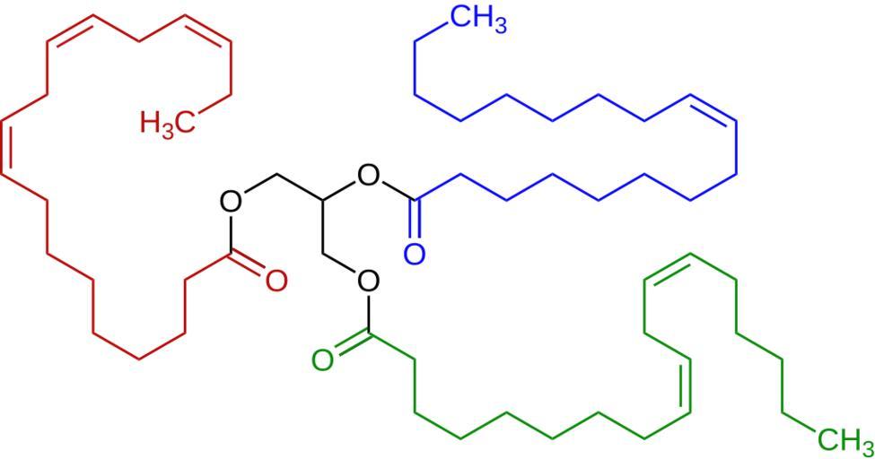 | Keywords: Triglyceride unsaturated Structural Formulae V2.svg en A representative triglyceride found in a linseed oil a triester triglyceride derived of linoleic acid alpha-linolenic acid and oleic acid 2015-03-23 own Neuroxic other versions 50px A png version of this image is also available File Triglyceride unsaturated Structural Formulae V 1 png cc-zero Uploaded with UploadWizard Triglycerides | ||||