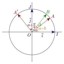 Keywords: Trigo somme 2 angles.svg Cosinus et sinus de la somme de deux angles dans un cercle trigonométrique formules <math>\cos a+b </math> et <math>\sin a+b </math> Inkscape 12/06/2007 WikiC SVG trigonometric circles