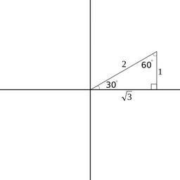 Keywords: TrigTriangleAt30Degrees.svg en A 30-60-90 degree triangle inscribed on a Cartesian plane at a 30 degree angle Created in Inkscape 2015-05-15 own Jbeyerl other versions Uploaded with UploadWizard Trigonometric triangles
