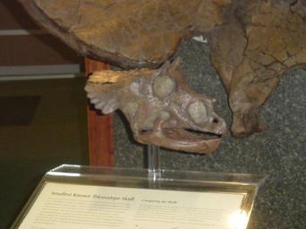 | Keywords: Trike baby.JPG Picture of the skull of a juvenile Triceratops mounted in the atrium of the library in the Valley Life Sciences Building at the University of California Berkeley It is mounted next to an adult skull part of which can be seen above the juvenile The skull is a polyester cast modeled after a real fossil found in Montana in the United States The frill and back of the skull are known but everything in front of the eye socket is speculative I took this picture in June of 2006 and release all rights 2006-06-02 own assumed Sheep81~commonswiki Triceratops juvenile skulls Dinosaurs in museums |