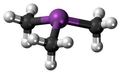 | Keywords: Trimethylstibine-3D-balls.png Ball-and-stick model of the trimethylstibine molecule an organic antimony compound Colour code 505050 Carbon C black<br> F0F0F0 Hydrogen H white<br> AA5ABE Antimony Sb lilac<br> 2011-06-09 own DS Visualizer Jynto talk Space-filling version cc-zero Organoantimony compounds Methyl compounds Images by Jynto |