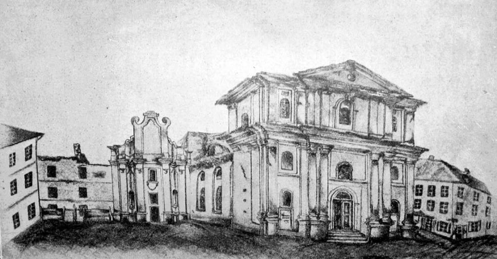 | Keywords: Trinitarian church, Lviv (2).jpg uk Руїни т иніта ського монасти я у Львові Sobczyńska M Koścół p w Przenajświętszej Trójcy i klastor trynitarzy «intra moenia» we Lwowie dzieje i architektura // Sztuka kresów wschodnich T 6 S 52 1850 author PD-old Trinitarian monastery Lviv |