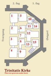 Keywords: Trinitatis Kirke Copenhagen crypt.gif Trinitatis Kirke Copenhagen Denmark Kort over krypten under koret Own 2007-04-30 Ib Rasmussen Own work all rights released Public domain Trinitatis Kirke