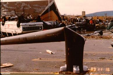 | Keywords: Trinity United Methodist Church damaged after the 1989 tornado.jpg en A snapped light pole and overturned vehicles litter the parking lot in front of the sanctuary of Trinity United Methodist Church Huntsville Alabama the day after a tornado ravaged the area The sanctuary was completely rebuilt afterward 1989-11-16 http //www srh noaa gov/images/bmx/significant_events/1989/11_15/graphics/ C S;O D National Weather Service Birmingham Alabama office other versions PD-USGov 1989 Huntsville Tornado |