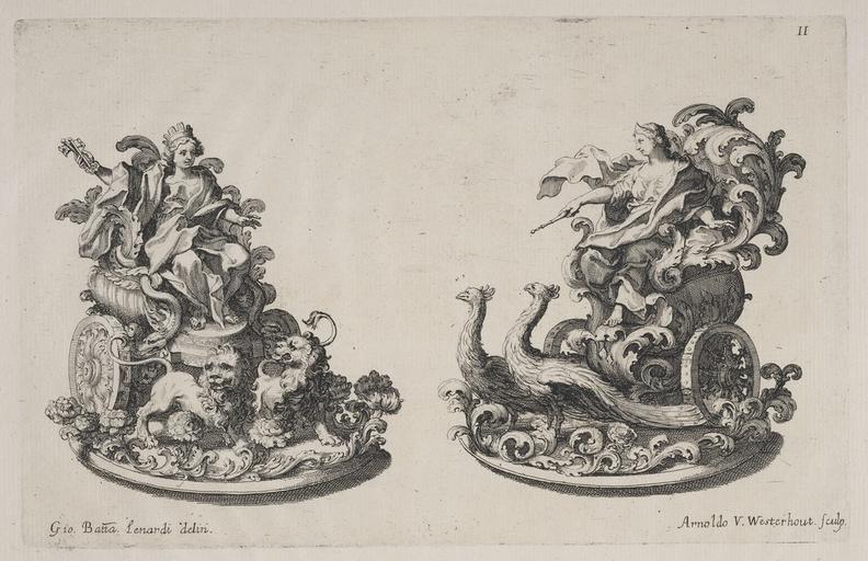 | Keywords: Trionfi di Cibele e Juno.jpg en The table sculptures were designed for the banquet given by British Ambassador Roger Palmer Earl of Castlemaine in Rome on January 14 1687 The goddesses are personifications of Earth and Air in an allegorical composition on the Four Elements which also included sculptures of Vulcan and Neptune Captions/inscriptions II--in upper right Gio Batta Lenardi delin --in lower left Arnoldo V Westerhout Sculp --in lower right Trionfi di Cibele e Juno progettati da Giovanni Battista Lenardi e Arnold van Westerhout per il banchetto dato dall'ambasciatore britannico Roger Palmer a Roma il 14 gennaio 1687 “ Italia 2016-03-05 http //search getty edu/gri/records/griobject objectid 242745585 The J Paul Getty Trust Giovanni Battista Lenardi e Arnold van Westerhout other versions Custom license marker 2016 03 05 PD-old-100 Sugar sculptures Banquets in art Giovani Battista Lenardi Centrepiece tableware |