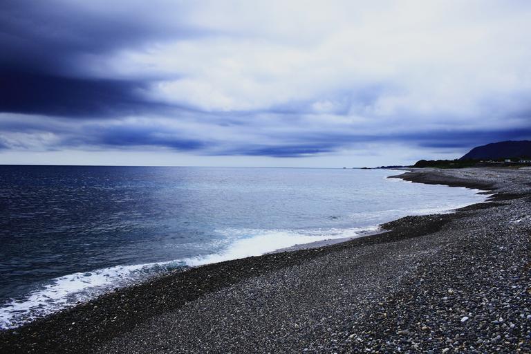 Keywords: triple shichirimihama sea seaside blue beach cobble stone gravel waves wave japan cloud