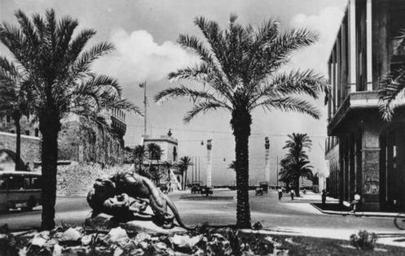 | Keywords: Tripoli's Independence Square.jpg A circa 1945-1955 image of Italian colonial Piazza Italia 1930s-1950s - on the harbour in downtown Tripoli in the Italian Libya era The present day Martyrs' Square or Maidan Al Shohdaa in independent Libya Also formerly named Independence Square 1950s-1960s and Green Square or E'saha ElKhadra 1970s-mid 2011 View is to the north with the piazza's central fountain in foreground and the two monument columns on the end at Tripoli Bay before 1960s landfills extended land far into harbour beyond The Ottoman era Red Castle Tripoli Castle museum is on the left and former Italian era Teatro Miramare on the right http //alimohamedzaid jeeran com/categories/ليبيا_في_الذاكرة صور_قديمة/ alimohamedzaid jeeran com 1945-1955 not mentioned PD-Libya Green Square Tripoli 01 Tripoli Castle Teatro Miramare w History of Tripoli Italian occupation of Libya Tripoli Fountains in Libya Streets in Tripoli Arecaceae in Libya Sculptures in Tripoli |