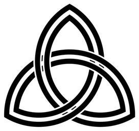 | Keywords: Triquetra-Double-concentric.svg Double triquetra shape with overall interlacing but where the inner triquetra and the outer triquetra do not separately interlace Modified version of File Triquetra-Double png / File Triquetra-Double svg generated from the following PostScript source code <pre> /y 240 120 3 sqrt mul add def/z 5 2 roll arc stroke def/c1 306 240 z def/c2 186 y z def/c3 426 y z def 32 setlinewidth 1 setgray 245 -2 7 182 7 c1 245 -122 7 62 7 c2 245 117 3 302 7 c3 209 2 1 177 9 c1 209 -117 9 57 9 c2 209 122 1 297 9 c3 20 setlinewidth 0 setgray 245 -1 928 181 928 c1 245 -121 928 61 928 c2 245 118 072 301 928 c3 209 3 22 176 77 c1 209 -116 77 56 77 c2 209 123 23 296 77 c3 6 setlinewidth 1 setgray 222 52 70 c1 196 48 67 5 c1 258 57 5 74 c1 232 53 5 71 c1 222 -68 -50 c2 196 -72 -52 5 c2 258 -62 5 -46 c2 232 -66 5 -49 c2 222 172 190 c3 196 168 187 5 c3 258 177 5 194 c3 232 173 5 191 c3 showpage EOF</pre> 2009 AnonMoos thumb center fully-interlaced In the movie Shrek 3 the ship is decorated with structurally-equivalent ornaments though the geometric placement of the arcs and the artistic rendering are very different Interlaced triquetra Trefoil knot diagrams with 3-fold rotational symmetry Decorative knots Images with PostScript source code Knots and links on transparent background Outline knots and links |