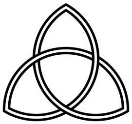 | Keywords: Triquetra-Vesica.svg A form of the Triquetra symbol which has the exact geometrical proportions to be composed of three overlapping Vesica piscis symbols ” something which is important to a few authors of books on Christian symbolism Ribbons version For other versions of the triquetra see also Image Triquetra-Vesica-solid png Image Triquetra-Double png Image Triquetra-Interlaced-Triangle-Circle png Image Triquetra-tightly-knotted png and Image Triquetra-circle-interlaced png The six curve-intersection points define four small equilateral triangles which make up one large equilateral triangle SVG converted from the following vector PostScript source code <pre> /y 240 120 3 sqrt mul add def 50 setlinewidth 1 setgray 306 240 240 0 180 arc 186 y 240 -120 60 arc 426 y 240 120 300 arc closepath stroke 30 setlinewidth 0 setgray 306 240 240 -1 928 181 928 arc stroke 186 y 240 -121 928 61 928 arc stroke 426 y 240 118 072 301 928 arc stroke 10 setlinewidth 1 setgray 306 240 240 - 672 180 672 arc stroke 186 y 240 -120 672 60 672 arc stroke 426 y 240 119 328 300 672 arc stroke 30 setlinewidth 0 setgray 306 240 240 115 125 arc stroke 186 y 240 -5 5 arc stroke 426 y 240 235 245 arc stroke 10 setlinewidth 1 setgray 306 240 240 114 126 arc stroke 186 y 240 -6 6 arc stroke 426 y 240 234 246 arc stroke showpage EOF</pre> 2005 PNG and PostScript source ; 2006 SVG AnonMoos PostScript ; first SVG version uploaded by Erin Silversmith AnonMoos Triquetra-Vesica-3parts svg Interlaced triquetra Trefoil knot diagrams with 3-fold rotational symmetry Knots and links on transparent background Images with PostScript source code |