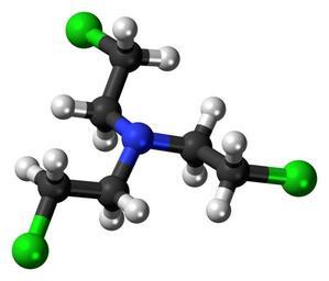 | Keywords: Tris(2-chloroethyl)amine 3D ball.png Ball-and-stick model of the tris 2-chloroethyl amine molecule also known as HN3 nitrogen mustard a chemical weapon Colour code 505050 Carbon C black<br> F0F0F0 Hydrogen H white<br> 3C50FA Nitrogen N blue<br> 14F014 Chlorine Cl green<br> 2011-07-15 own DS Visualizer Jynto talk Space-filling version cc-zero Images by Jynto nitrogen mustards | ||||