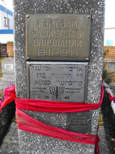 | Keywords: Trishin's cemetery in Brest - Holocaust memorial 1b.jpg ru Памятник на Т ишинском кладбище на месте пе езахо онения п име но 1 000 убитых ев еев - узников Б естского гетто Их останки были найдены во в емя ст оительных земляных абот на ул Куйбышева в годы войны - ул Длинная ul Dluga 2011-11-07 own Vadim Akopyan cc-zero Uploaded with UploadWizard Trishin's cemetery in Brest Belarus Ghetto Brest Belarus Holocaust memorials in Brest Belarus | ||||