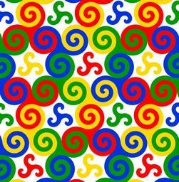 | Keywords: Triskele-quasi-tesselation.svg Ornamental four-colored design of interlocked spiral triskelion symbols -- a pattern which is a partial tesselation of the plane Includes large triple spiral triskelions based on three filled mathematical Archimedean spirals i e spiral triskelions of 11/6 turns interlocked with each other and also with small 1-turn triskelions filling the quasi-hexagonal gaps between them own For a single triple-spiral triskelion symbol similar to those interlocked in this graphic and the Postscript vector source code which generates it see Image Triskele-Symbol-spiral-five-thirds-turns svg 2007 AnonMoos Triple spiral Archimedean spirals Geometric patterns Generated by PostScript Computer generated textures |