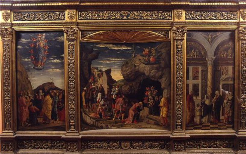 | Keywords: Trittico degli uffizi.jpg non-free frame Trittico degli uffizi www wga hu s 1460 creator Andrea Mantegna Technique painting Museum Uffizi credit line PD-old-100 <gallery> File Andrea Mantegna - Trittico - Google Art Project jpg </gallery> Uffizi Tryptich by Andrea Mantegna Images from Web Gallery of Art |