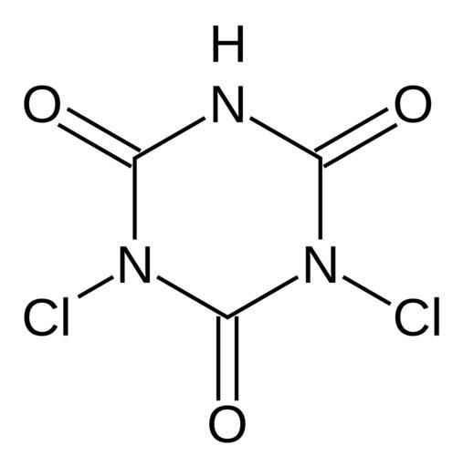 | Keywords: Troclosene.svg Structural diagram of troclosene also known as dichlor IUPAC name 1 3-dichloro-1 3 5-triazinane-2 4 6-trione Created using http //www acdlabs com/download/chemsk html ACD/ChemSketch 10 0 and Inkscape Own 2006-12-23 Fvasconcellos 300px Antimicrobials Triazines Nitrogen-chlorine compounds |