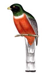 | Keywords: Trogon elegansAQBIP02CA.jpg en Elegant Trogon Trogon elegans male hand-colored lithograph Report on the United States and Mexican boundary survey made under the direction of the secretary of the Interior by William H Emory Volume on Birds edited by Spencer Fullerton Baird 1857-1859 United States Department of the Interior Public Domain--original work of United States federal government also published in the United States pre-1923 PD-USGov PD art uploaded by Patrick Coin Trogon elegans | ||||