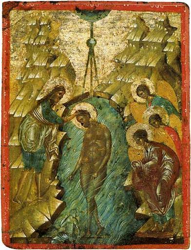 Keywords: Troitskiye tabletki - Baptism.jpg К ещение Двусто онняя икона-таблетка Вто ая четве ть XV в Холст левкас темпе а 23 × 18 см Се гиево-Посадский госуда ственный исто ико-художественный музей-заповедник Россия Из комплекта так называемых «Т оицких таблеток» Обо от «С етение» http //www icon-art info/group php lng ru grp_id 64 Вто ая четве ть XV в anonymous Troitskiye tabletki Files uploaded by Shakko from various sources PD-old Icons of the baptism of Jesus Christ |