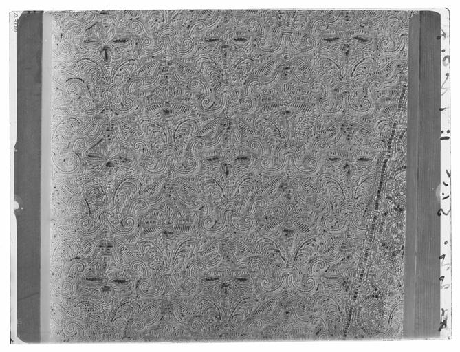 | Keywords: Tröja av guldlamé helt täckt av guldbroderi - Livrustkammaren - 2543-negative.tif LSH artwork sv Förmodligen tillverkad i Frankrike Buren av Karl X Gustav 1622-1660 i samband med kröningen Dräkten beställdes 1654 från Frankrike genom Magnus Gabriel de la Gardie inför festligheterna vid Karl X Gustavs kröning och efterförljande bröllop Sex dräkter levererades och den här beskrivna var den högst värderade Ursprungligen var den försedd med 140 diamantknappar vilka änkedrottningen Hedvig Eleonora tog hand om efter kungens död Hon lät också sprätta bort merparten av guldspetsarna för att använda dem till utrustningen för kritzryttaren i makens sorgetåg Till dräktens kompletta utrustning hörde 1654 sko- och strumpeband av gllenduk högröda taftunderbyxor och silkesstrumpor ett guldbroderat gehäng hattband av guld handskar med gllenduksfodrade kragar en panasch med fjädrar i förgerna coleur de feu filemort och aurora samt ett par förgyllda sporrar och en värja med dito fäste I 1671 års inventarium står En Klädningh som är gjord till H K Maij tz Lÿcklige Cröningh och sägs omfatta följande plagg nämligen kappa tröja byxor knäband skorosor och handskar I 1654 års klädkammarräkning förtecknas dräkten under nr 3 på följande sätt 1 klädning och kappa av filemort gul oskuren sammet helt broderad med guld och med 140 diamantknappar till tröjan och byxorna 1 par strumpeband och skoband av rik guldbrokad helt broderade med guld 1 par underbyxor av incarnadie rosa taft och silkesstrumpor av samma färg 1 guldbroderat med guld och stofferade med guldbrokad 1 panasch plym av couleur de feu röda filemort och aurorafärgade fjädrar 1 par förgyllda sporrar och 1 värja med förgyllt fäste Nu finns endast tröjan och byxorna i behåll i sitt skick som dräkt medan den stora rundskurna kappan inte längre omtalas i inventarierna efter 1691 1704 års inv säger inget om kappan men den finns förvandlad till mässhake och altarbrun i Riddarsholmskyrkan Skänkta dit den 1 april 1705 av Riksänkedrottningen Hedvig Eleonora Mässhaken Gjord av tjock gul rips OBS Fel Enl Sveriges kyrkor skall vara sammet oskuren ett material som skiljer sig från såväl tröjans som byxornas Broderad med mönster i guld på samma sätt som på tröjan och byxorna Mönsterrapport 8 x 8 cm Såväl fram- som bakstycket består av 2 hopsydda våder av c a 40 cm bredd max längd ca 90 cm Drottningens namnchiffer HRS samt ANNO 1705 har broderats på respektive fram- och baksidorna Tröjan är sydd av vad man med ett modernt namn skulle beteckna som guldlamé som helt täckts med guldbroderi Den är av s k innocenttyp d v s ett relativt kort livplagg med planschetter inlagda som styvnad i framstyckenas snibbiga främre hörn försett med 10 små skört ståndkrage och relativt korta ärmar med öppna sömmar framtill På vänster framstycke har 17 st 2 cm knapphål sytts med jämna mellanrum ca 1 cm från kanten Vad man bör lägga märke till är att tröjan sytts av ett större antal stycken som skarvats samman Förmodligen har plagget antingen redan varit i tidigare bruk före kröningen 1654 och blivit något förtrångt eller också har man misslyckats med passformen vid tillfället i fråga och har varit tvungen att göra en del ändringar Möjligheten att tröjan kan ha förändrats vid något senare tillfälle kan man inte heller bortse ifrån Bottenmaterialet består nämligen av två skilda lamétyger ett något gulare i de smalare skarvarna och f ö ett något rödare det egentliga materialet Tröjan är huvudsakligen skuren i 2 framstycken 2 ryggstycken samt 2 ärmstycken till vardera ärmen 10 skört samt krage Man kan alltså visa att framstyckena måste skarvas med remsor av det gulare tyget utefter de raka framkanterna samt även i sidsömmen I halsringningen har en liten kil satts in mellan det vertikala skarvstycket fram och axelsömmen Bakstyckena ha fått var sin vertikala skarv knappt 4 cm bred mitt i ryggen på ömse sidor om mittsömmen Utefter ärmarnas öppna långsidor har vertikala stycken fogats till och nere vid ärmens avslutning har på undersidans stycken en smal horisontell remsa sytts På överärmstycket däremot har en horisontell skarv satts in överst uppe vid ärmringningen Kragen är också uppklippt baktill och försedd med 2 små skarvstycken Det 3 e skörtet på varje sida är eventuellt nysytt ty dess färg förefaller ljusare broderiet är klumpigare och kompositionen annorlunda mot alla de övriga 8 som exempelvis har den lilla blomman nedtill i mitten Mönstret har i någon mån missuppfattats i de senare sydda styckena så har man t ex lagt krepiner och trådar i båge i stället för att klippa av dem och börja med en ny tråd Ärmarnas nedersta parti mellan 3 5-7 cm är lämnat utan broderi beroende på att det ju skulle vikas till uppslag Ärmarna har inga knappar eller knapphål intill sprunden vid handlederna I midjan sitter på insidan under skörten 8 st små tampar med vardera 2 hål för byxornas hakar Guldlamén har en vådbredd av minst 31 cm utan stad 45x15 tr/cm2 Varje inslag består av gult silke med 2 och 2 smala trinda guldtenar på rätan Analysresultat Metalltråd tvinnad med textiltråd huvudbeståndsdelar Silver xxxGuld xKoppar xxxZink 0Det yttäckande läggsömsbroderiet består av kantiljer av trinda tenar och platta lan av olika bredd snodder med silkeskärna omtvinnade med guldlan strängar dragna av trinda tenar av guld eller silver som stansats ut i spiraler eller öglor och manglats platta på halva sidan här benämnda spiral- eller paljett strängar i brist på befintlig terminologi och 2 och 2 tätt liggande strängar med trinda smala guldtenar virade runt ett bredare guldanklätt snöre etc Broderiet är nersytt med gult silke Mönsterraporten är 6 5x6 5 cm Mönstret Ur 2 från varandra utåtböjda palmkvistar som strax nedanför mitten sammanhålles med en uppåtböjd båge växa omväxlan