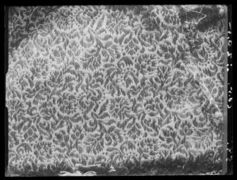 | Keywords: Tröja av sämskskinn. Förmodligen tillverkad av Jehan Beranger, Stockholm - Livrustkammaren - 28234.tif LSH artwork Friderich Feuerbrun pärlstickare Jehan Johan Beranger brodör sv Tröjan av sämskat skinn som tydligen parfymerats av s k innocenttyp med svängd midjelinje 10 skört ståndkrage och relativt korta ärmar med öppna sömmar framtill På grund av det ganska stela och styva materialet eller av att man begagnat sig av ett något urvuxet plagg har man försett det med diverse kilar och tillskarvade stycken Tydligen har man broderat de tillskurna bitarna innan de sedan fogats samman Broderiet är av något annan karaktär än kasackens och byxornas som däremot sinsemellan förefalla likartade I tröjan kan man spåra mer av stramhet Broderiet har sytts icke blott genom lädret utan också genom ett relativt grovt lärftsfoder 17x17 tr/cm2 som lagts mot lädrets insida Broderiet utgörs även här av en bård Den upptar egentligen ett strängt stiliserat mönster av 16 cm höjd och har nertill vid ytterkanterna begränsats av en repstav och härovanför av en bård som innehåller delar av vad man skulle vilja kalla lambrequinmotiv lagt med repstav Ovanför denna bård följer kompositioner med fruktkorgsmotiv samt palmettarrangering helt symmetriska Allra överst komma dock tulpanliknande blommor som böja sig varannan gång åt höger varannan gång åt vänster Rakt ovanför lambrequinmotivet sitter en liten symmetrisk 7-bladig palmett Anmärkningsvärt är att man tydligen på tröjan sedan de broderade läderstyckena monterats broderat små kantiljer utanför sömmen d v s i mönstrets fortsättning på det andra läderstycket På ärmarna har man t o m broderat ett ca 4 á 5 cm brett parti i något klumpigare utförande på det nedersta ärmstycket Här kan observeras att man genomgående glömt att göra stycket spegelvänt i förhållande till den intilliggande fruktkorgen Mönstret är för övrigt otroligt väl anpassat till bårdens bredd så att dess proportioner växla på det mest följsamma sätt Lädrets sömmar är hopkastade från baksidan med ca 6stygn/cm samt åt motsatt håll med ca 2 långa kaststygn sytt med 2-trådig högertvinnad grå lintråd I själva broderiet som sytts genom läder och linnefoder har man t ex tagit 9 stygn på en sträcka av 1 cm längd när man sytt ner paljettsträngen Man har använt olikfärgat silke grått gult brunt - med mellannyanser - samt rosa och halmgult Ett speciellt påpekande bör göras angående skörtens broderier Här har man nämligen förminskat mönstret till mindre rapport och endast broderat små blommor och ornament men likväl behållit lambrequinbården som även den förminskats Man kan lägga märke till delsatt när den 4 5 cm breda spetsen som sytts på skörtens 3 fria sidor denna sitter så långt in på broderiet att lambrequinbården helt döljs dels att man genomgående klippt fodertyget brokaden på baksidan något större än det broderade läderskörtet Dessutom har man på vänstra sidans främsta skört klippt av dess bakre sida vertikalt mitt i broderiet - man har tydligen från början broderat på ett alltför stort skörtstycke Blott en del skört har fått det yttersta snoddbandet som ingår i dekoren placerat på de 3 yttersidorna Kragen har broderier endast på höger sida ca 9 cm från framkanten räknat På vänster sida går däremot dessa ej ut från kanten utan ca 1 5 cm därifrån och omkring 8 cm åt sidan Det är en ståndkrage med ett 60-tal vertikala avsyningar över de 2 i det grova lärftsfodret 19x18 tr/cm2 horisontellt inlagda lång fiskbenen Dess söm bak ligger inte helt i mitten utan någon cm mer åt höger Upptill är den kantad med ett numera mycket trasigt grått ripsband och har haft vitt taftfoder på insidan Längs den raka framkanten knäpps tröjan med 22 st knappar ca 1 2 cm i diameter varav den 6 e uppifrån saknas Dessutom finns i ståndkragen 3 knappar av samma sort och lika många tränsar av guld- och silvertråd Ärmarna saknar nertill vid uppslagen knappar och knapphål och skiljer sig härigenom från flertalet tröjor På det högra framstycket där knapparna sitter finns en ca 4 5 cm bred knypplad guld- och silverspets med inlagda breda silverlan som nedifrån skörtets yttersta spets och uppåt räknat når till en höjd av 25 cm Härovanför vidtar en betydligt smalare spets blott 2 8cm bred Detta arrangemang verkar vara ursprungligt då man kan finna liknande tillvägagångssätt på andra tröjor På den knapphålsförsedda vänstra sidan saknas spets helt Placeringen av den breda spetsen tyder på att plagget blott skulle vara knäppt t o m det 12 e eller 13 e knapphålet uppifrån räknat Numera kan man göra den iakttagelsen att just dessa knapphål slitits vilket visserligen även skett med det 20 e som dock kantänkas härröra från tidigare utställning I övrigt har den breda spetsen tydligen suttit runt omkring alla skört Varje skört drar ca 40 cm vid de öppna ärmsömmarna i de öppna ärmuppslagens insidor runt ärmsömmarna på axelsömmarna och 38 cm på vänster framstycke och eventuellt även på kragen Numera finns spetsarna uteslutande kvar på 1 a skörtet på höger sida skörten mitt bak samt det 3 e på vänster sida i bägge ärmarnas långa sprund i ärmuppslaget på vänster ärm runt höger ärm samt vid nedre delen av vänster ärmringning på höger axel och den redan nämnda biten på höger framstycke I midjesömmen under skörten sitter på insidan 6 st byxtampar försedda med vardera 2 hål Den mellersta på höger sida är troligen senare ditsydd eftersom den är klädd med en glesare vävnad med mörkare guldlan De övriga är - som brukligt är - sydda av foderbrokaden Tröjan är fodrad med s k gyllenduk d v s guldbrokad Den har en vådbredd av minst 50 cm utan stad ca 70x20 tr/cm2 med varp av otvinnat vitt silke Inslaget bildas av tjockare vitt silke med silverlan på rätan i varje inslag sa