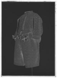 | Keywords: Tröja av svart atlas, 1650-tal - Livrustkammaren - 18868-negative.tif LSH artwork Friderich Feuerbrun pärlstickare David Pärlestickare pärlstickare sv Detta är en dräkt som man mycket gärna skulle vilja sätta i samband med Karl X Gustavs kröning men det finns ännu inget dokumentariskt bevis för detta dräkten ingår ev i fransyska varorna Det är en synnerligen rikt utstyrd dräkt och den har såväl i sitt broderi som i sin foder brokad en ovanligt hög guldhalt I 1671 års inventarium sägs det att dräkten utgörs av kappa tröja byxor knäband skorosor och handskar Allt av svart atlas med Gull heelöfwer borderat Numera är tyvärr dräkten inte längre så fullständig både 1671 och 1676 års inventarier vittnar visserligen om kappans existens men därefter är den försvunnen man hade redan 1671 tagit bort spetsarna av guld och 20 år senare omtalas kappan ej längre Nuvarande inventarium omtalar blott tröja byxor och 1 handske Under ett annat inventarienummer 3435 har emellertid kunnat identifieras ett dräkttillbehör nämligen ett gehäng med samma broderi Den svarta atlasen har en vådbredd av ca 53 cm utan stad Staden är 1 3 cm bred 10 gröna 10 vita 10 gröna 10 vita 10 gröna samt 5 tjocka svarta trådar - tuskaft Trådarnas antal kan variera Det hela ytan täckande broderiet är utfört i läggsöm och har en mönsterrapport av h 10 cm b 6 8 cm Det är utfört med olika sorters guldkantiljer samt paljettsträngar Längs en del kantsömmar har man sytt på ett smalt guldsnöre bestående av en tvinnad tråd omspunnen med lan Broderiet är nersytt med vitt och gult silke samt tjockare rosa lintråd <br/>Analysresultat Tråd och lan av legerat guld huvudbeståndsdelar <br/>Silver xx<br/>Guld xxx<br/>Koppar xxx<br/>Zink 0<br/>Mönstret är ett stiliserat blomstermönster där ett ringformigt omtag snarast utvecklats till en krona som utdragna klockliknande blomkalkar vända sig till eller ifrån I plaggen kan man observera att broderiet uppvisar olika kvaliteter och här kan även spåras skarvar i tyget underlaget De tillskurna bitarna uppvisa en klumpigare torrare karaktär i broderiets utförande samt smärre avvikelser från det gängse utförandet Så t ex har i tröjan den lilla 5-bladiga blomman ovanför kronan sitt översta mellersta blad sytt med horisontella kantiljer istället för vertikala som det borde varit Mönstret är också gyttrigare och oredigare Kronans tinnar är omramade av i öglor lagda konturtrådar och ej som i det ursprungliga broderiet där konturen går upp och ned <br/>Mönsterrapport ca h 77 mm b 58 mm Tröjan av innocenttyp är sydd med 2 framstycken som utökats såväl upptill på axelpartiet som utefter ärmringningen och längs sidosömmen med tillsatta bitar I ryggen har skarvstyckena infogats längs en mittsöm ursprungligen kunde ryggstycket ha varit helt Nu ligger emellertid på ömse sidor mittsömmen en smal blott 1 5 cm bred skarv Likaså har man även baktill gjort tröjan något längre genom skarvar utefter axel- och halsringningarna Ärmarna har bara utvidgats obetydligt genom en skarvad remsa utefter underärmstyckets bakre övre del samt på bägge styckena nertill utefter ytterkantens söm ärmsprundets sida ca 27 cm Kragen har klippts upp på samma sätt som ryggstycket så att intill mittsömmen 2 små skarvstycken ligga på ömse sidor synbarligen även placerade upp- och nedvända Tröjan har 10 skört och i midjesömmen sitta på insidan 8 st byxtampar vardera med 2 hål Fodret utgöres av guldbrokad med svart botten Det har en vådbredd av minst 47 cm ev ca52 x 14 á 15 tr/cm2 Det är en ripsvävnad med varp av svart otvinnat silke Inslagen är 14 st med gult silke högertvinnad med guldlan samt 14 st med gult silke högertvinnad med guldlan samt 14 st svarta med guldlan på rätan Stad ca 1 3 cm 8 gröna 9 vita 12 gröna 8 vita 11 gröna 6 svarta trådar - de färgade i atlasbindning de svarta i lärftsbindning Mönsterrapport h 7 7 cm b 5 8 Mönstret består av halvnaturalistiska små blomsterkvistar <br/>Analysresultat Metalltråd tvinnad med textiltråd huvudbeståndsdelar <br/>Silver xxx<br/>Guld xx<br/>Koppar xx<br/>Zink 0<br/>Då fodret är mycket trasigt och slitet har man fodrat in kragen och den övre delen av tröjan med svart taft Skörten som ju också är fodrade med brokaden har fått bitar av denna på varierande led Man har givetvis velat utnyttja det dyrbara materialet till fullo I framkanten på vänster sida har tröjan en knapphålsrad med 23 knapphål 2 cm långa På motstående sida finns 22 knappar i behåll de är 1 2 cm i diameter Knapphålsraden är på undersidan fodrad med guldbrokad av samma typ som finns i byxornas fickor Nertill i framstyckena finns planschetter som når t o m det 13 e knapphålet eller är ca 22 cm långa Dessa är klädda med något grövre linnelärft än den oblekta linnelärft som utgör mellanfoder i tröjan 23x18 tr/cm2 Det finns 3 knappar med tränsar i ståndkragen Knapparna är överklädda med olika guldtrådar lan och kantiljer I midjan på tröjan har man mellan fodren lagt en avklippt stadremsa vävd randig i gult och orange med svart som ev är en avklippt stad från någon annan dräkts tyg ev den oskurna svarta sammetsdräkten nr 3421 Detta för att ge mera styrsel åt plagget Att man klippt till plaggets olika delar och beräknat sömmarnas placering innan man broderat dem visar bl a ärmarnas nedre parti som på den broderade sidan ju skulle vikas till uppslag De har alltså ej behövt broderas ända ned utan man har lämnat den svarta atlasen bar på ett knappt 10 cm brett stycke Blott mitt fram på högra sidan under knappraden finns en knypplad ca 1 7 cm bred guldspets med guldlan kvar original caption Karl X Gustavs kröning Kristinas kröning Karl X Gustav och Hedvig Eleonoras bröllop 1647 brocade d2 - dräkt - foder material guldbrokad - silk Färg svart d1 - dräkt - yttermaterial material atlas LRK Karl X Gustav av Sver
