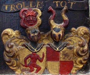| Keywords: Trolle Tot (Vor Frue Kirke København).JPG Alliancevåben Trolle og Tot detalje fra epitafium over GEORGVIS WIND og INGEBVRGA WLFSTAND Vor Frue Kirke København own 2012-09 Orf3us Coats of arms of families of Denmark Interior of Københavns Domkirke PD-old-100 |