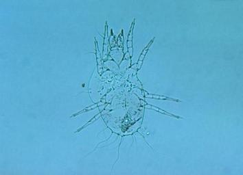 | Keywords: Trombicula.jpg This is a photomicrograph of a female ham mite a species of the suborder Sarcoptiformes There are over 200 families of mites many being parasitic on plants and animals The parasitic forms produce dermatitis and some species are etiological agents of mange and scabies; species in the genus Trombicula are vectors for scrub typhus CDC 2007-11-24 CDC PD-USGov Scabies |