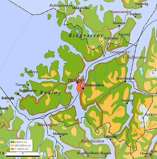 Keywords: Tromsø map.jpg en Map of Tromsø municipality Norway Own Jensens 2008-12-05 Maps of Tromsø