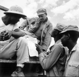 | Keywords: -... troops in Burma stop work briefly to read President Truman's Proclamation of Victory in Europe.-, 05-09-1945 - NARA - 531341.jpg troops in Burma stop work briefly to read President Truman's Proclamation of Victory in Europe 05-09-1945 - NARA - 531341 tif Local identifier 111-SC-262229 Department of Defense Department of the Army Office of the Chief Signal Officer 09/18/1947 - 02/28/1964 Still Picture Records Section Special Media Archives Services Division NWCS-S National Archives at College Park 8601 Adelphi Road College Park MD 20740-6001 1945-05-09 Record group Record Group 111 Records of the Office of the Chief Signal Officer 1860 - 1985 Record group ARC 440 Signal Corps Photographs of American Military Activity compiled 1754 - 1954 Series ARC 530707 Variant control numbers NAIL Control Number NWDNS-111-SC-262229<br /> Select List Identifier AFRO/AM LIST 12 General notes Scope and content File unit File unit ARC NARA-cooperation PD-USGov VE Day African American soldiers Burma Campaign 1944-1945 World War II forces of the United States in Burma |