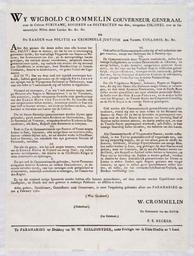| Keywords: Tropenmuseum Royal Tropical Institute Objectnumber 0-459 Gedrukte bepaling betreffende het vrijla.jpg en Printed document concerning the emancipation of slaves nl Document Gedrukte bepaling van de Nederlandse overheid over het vrijlaten van slaven opgesteld op 4 februari 1761 te Paramaribo De bepaling is uitgegeven namens de gouverneur-generaal Wigbold Crommelin en de Raaden van Politie en Crimineele Justitie der voorsz Collonie c Het besluit bevat een reglement om de 'meenigvuldig kwaade gevolgen' van het vrijlaten van slaven te beperken Een korte samenvatting van de regels in deze 1 Niemand mag een slaaf vrijmaken manumiteren zonder toestemming van de politie De aanvraag zal niet worden toegekend als niet wordt bewezen dat de ex-slaaf zelf de kost kan winnen en dus niet ten laste van de kolonie komt te vervallen 2 De gemanumitteerden evenals zijn of haar nakomelingen moeten altijd respect en 'reverentie bewijzen' aan hun voormalige eigenaar en zijn familie 3 Mocht de vrije slaaf zijn voormalige eigenaar kwaad doen dan komt hij weer in dienst van deze en zijn vrouw 4 De ex-slaaf moet in de Christelijke religie zijn opgevoed 5 de gemanumiteerde moet zijn voormalige eigenaar en familie indien deze tot armoede vervallen in onderhoud verzorgen naar oordeel van een rechter 6 ex-slaven mogen trouwen doch niet met slaven 7 de nakomelingen van gemanumiteerden hebben recht op de erfenis bij sterfte; een vierde deel gaat naar de voormalige eigenaar of zijn kinderen 8 vrijgelaten Mulatten Indianen Negers en Negerinnen die zich vermengen met slaven en waaruit kinderen voortkomen moeten eerst een boete betalen; de tweede overtreding bestaat uit lijfstraf en de derde uit een terugkeer naar slavernij 9 een gemanumiteerde mag zich niet bij slavendansen ophouden op straffe waarvan ze de executie van een slaaf of slavin moeten aanzien Als tweede straf wordt hij of zij terug in slavernij gebracht 10 elke vrijgemaakte slaaf moet ten alle tijde respect en eerbied tonen aan alle blanken Hoewel zij in andere gevallen gelijke rechten hebben als vrijgeborenen dienen voormalige slaven dank voor hun vrijheid te tonen en anders worden zij gestraft Gedrukte bepaling betreffende het vrijlaten van slaven 1761-02-04 institution Tropenmuseum KIT-source 0-459 author KIT-license PD-old-100 Slavery in Suriname |