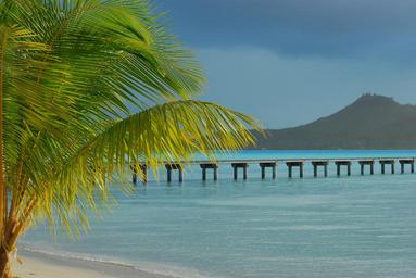 Keywords: tropical beach palm tree bora bora white sand