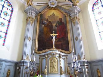 | Keywords: Truchtersheim StsPierrePaul 37.JPG Alsace Bas-Rhin Truchtersheim Eglise Saints-Pierre et Paul Autel-retable de Sts-Pierre-et-Paul 1750 own 2012 Ralph Hammann Cc-zero PM67001518 IM67009986 IM67009985 Artwork / Œuvre d'art / Kunstwerk Artist Saint Pierre et saint Paul debout se détachent devant le fond où est figurée l'église Saint-Pierre de Rome Dans le coin en bas à gauche le martyr de saint Pierre Cadre à motifs rocaille XVIIIe siècle oil canvas cm 300 Eglise Saints-Pierre et Paul Truchtersheim Chapelle attenante ancien chœur de l'église du XVIIIe IM67009986 object history other versions Ralph Hammann tu es Petus et super hanc petram oedificabo ecclesiam meam PD-old accession number Photographs of Truchtersheim by Ralph Hammann Taken with Canon PowerShot SX20 IS Maître-autel de Sts-Pierre-et-Paul Truchtersheim Objets monuments historiques in Bas-Rhin church paintings Baroque church paintings in Alsace 18th-century church paintings in Alsace 18th-century paintings of Saint Peter Paintings of Saint Peter in France Paintings of Saint Paul Altar crosses in Bas-Rhin Baroque tabernacles in Alsace Tabernacles in Bas-Rhin Eye of Providence in Alsace |