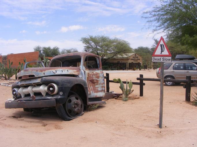 Keywords: truck car desert rusty vehicle sign dead slow obsolete decay rusting corroding scrap rusted