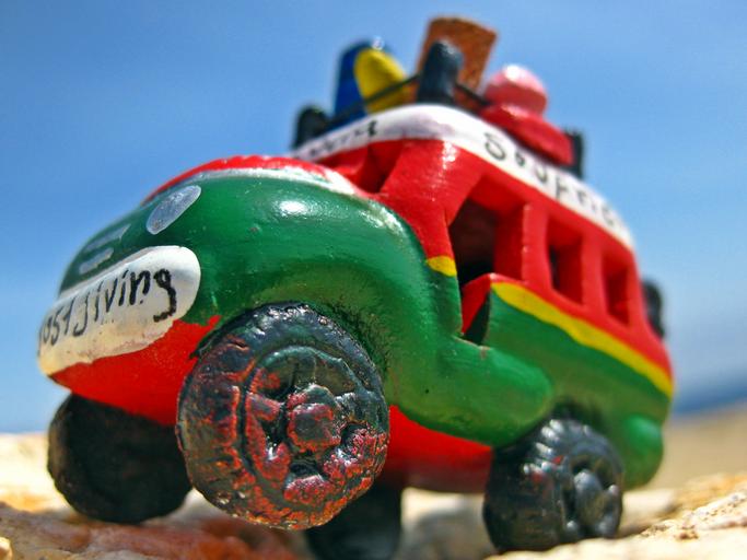 Keywords: truck toy jungle bush model caribbean mediterranean rasta red yellow green rocks sky blue transport old luggage off road vehicle fun colorful jiving cool st lucia jamaica barbados vintage bus reggae rickety sunny music taxi holiday travel island islands