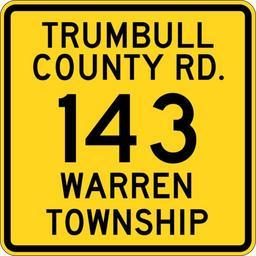 | Keywords: Trumbull County Route 143 OH.svg Warren Township Trumbull County Ohio as seen at http //www aaroads com/shields/show php image OH19551431 Based on File Trumbull County OH template svg 2013-07-05 00 12 02 own Minh Nguyen cc-zero Warren Township Trumbull County Ohio Diagrams of route markers of Trumbull County Ohio Diagrams of county route markers with county name 0143 143 number | ||||