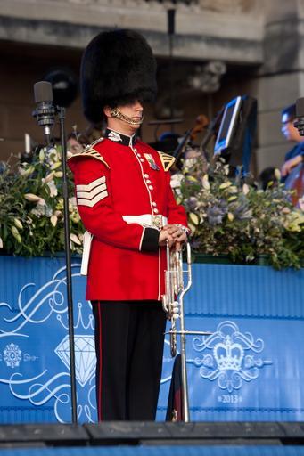 Keywords: trumpeter fanfare trumpeter buckingham palace coronation gala red tunic busby