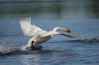 Keywords: trumpeter swan bird wildlife nature wild waterfowl cygnus water wings flight outdoors swimming flying take off fowl reeds waterbird white