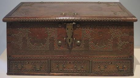 | Keywords: Trunk from Tanzania (Zanzibar), late 19th-early 20th century.JPG en Trunk from Tanzania Zanzibar Zanzibar Sultanate late 19th-early 20th century wood copper alloy paint iron nails German metal hardware long-term loan to the Honolulu Museum of Art by Doris Duke Foundation for Islamic Art accession 65 14a-d own Hiart photo 2016 Cc-zero Islamic furniture in the Honolulu Museum of Art Zanzibar Art of Tanzania African art in the Honolulu Museum of Art Trunks luggage Furniture in the Doris Duke Foundation for Islamic Art Wood carvings from Africa in the Honolulu Museum of Art |