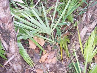 Keywords: Trunksandsprouts.JPG en Two trunks and a ground-level young sprout emerging from a stem Own Mmcknight4 2008-08-31 Acoelorrhaphe wrightii